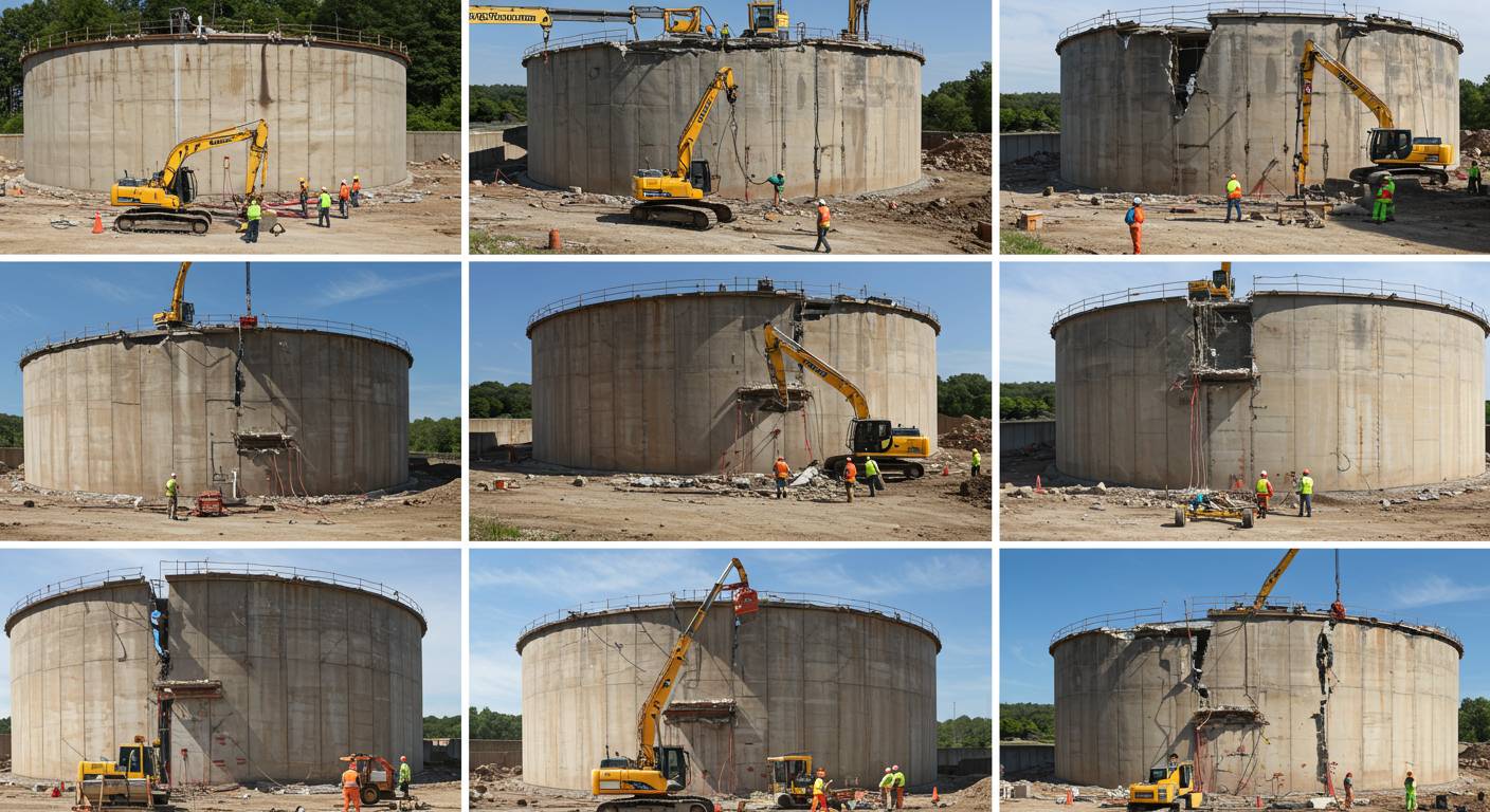 Для безопасного и эффективного демонтажа вертикальных резервуаров применяется современное специализированное оборудование: