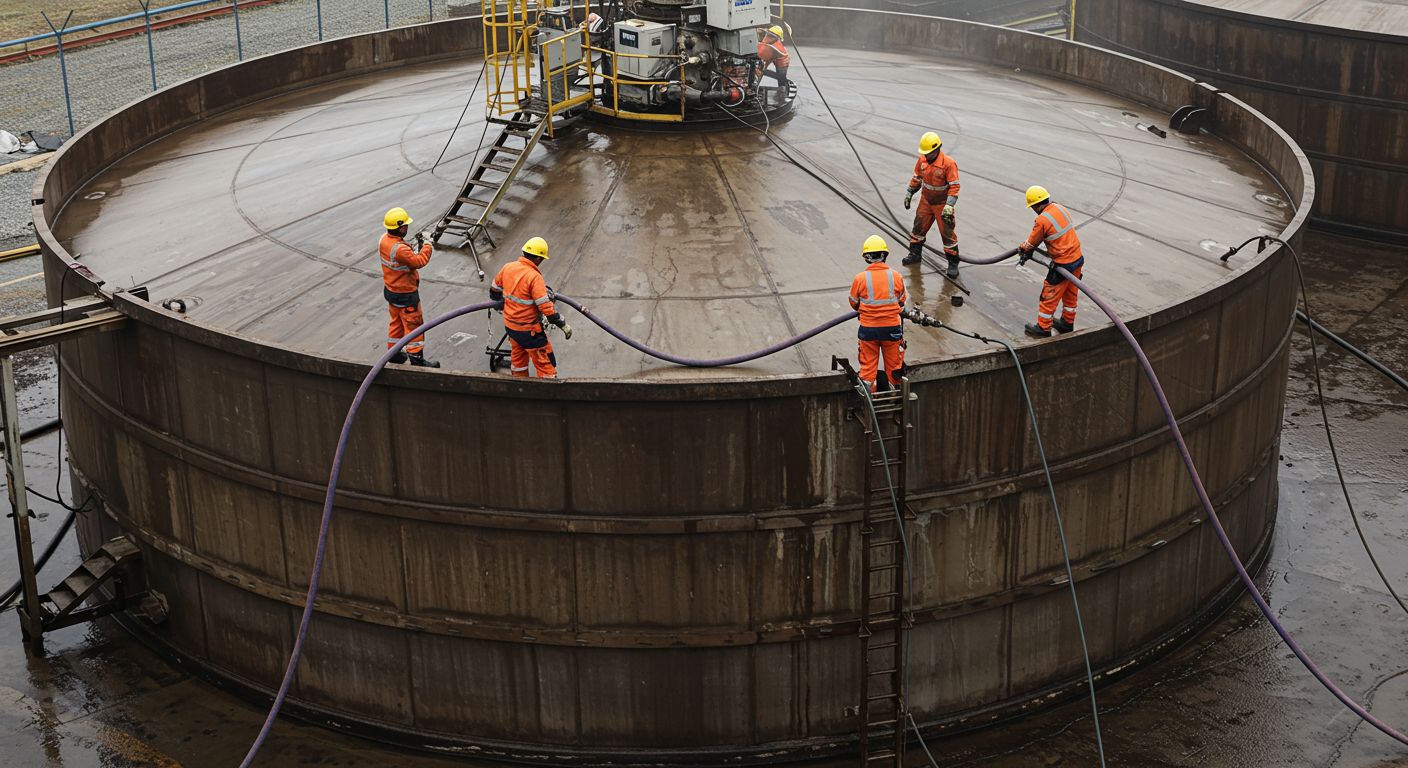 - Механическая очистка. На этом этапе проводится удаление крупных загрязнителей с внутренней поверхности резервуара, таких как ржавчина, отложения и твердые остатки. Используются различные инструменты, включая механические щетки, шлифовальные машины и другие устройства.