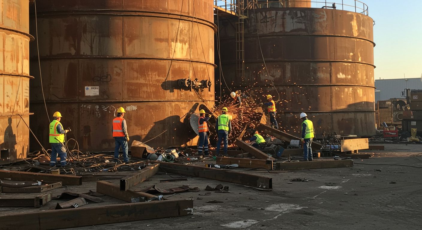 Подпись: Профессиональная разборка резервуаров позволяет получить качественные металлические детали для повторного использования.